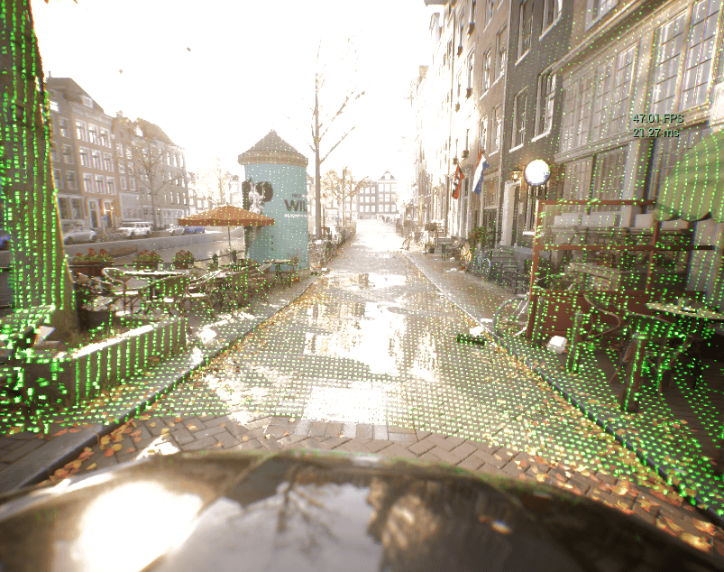 Physically grounded LiDAR and camera simulation with intensity, material, and surface state encoded per pixel and per return — so your models learn from the same edge cases your sensors see in real life.